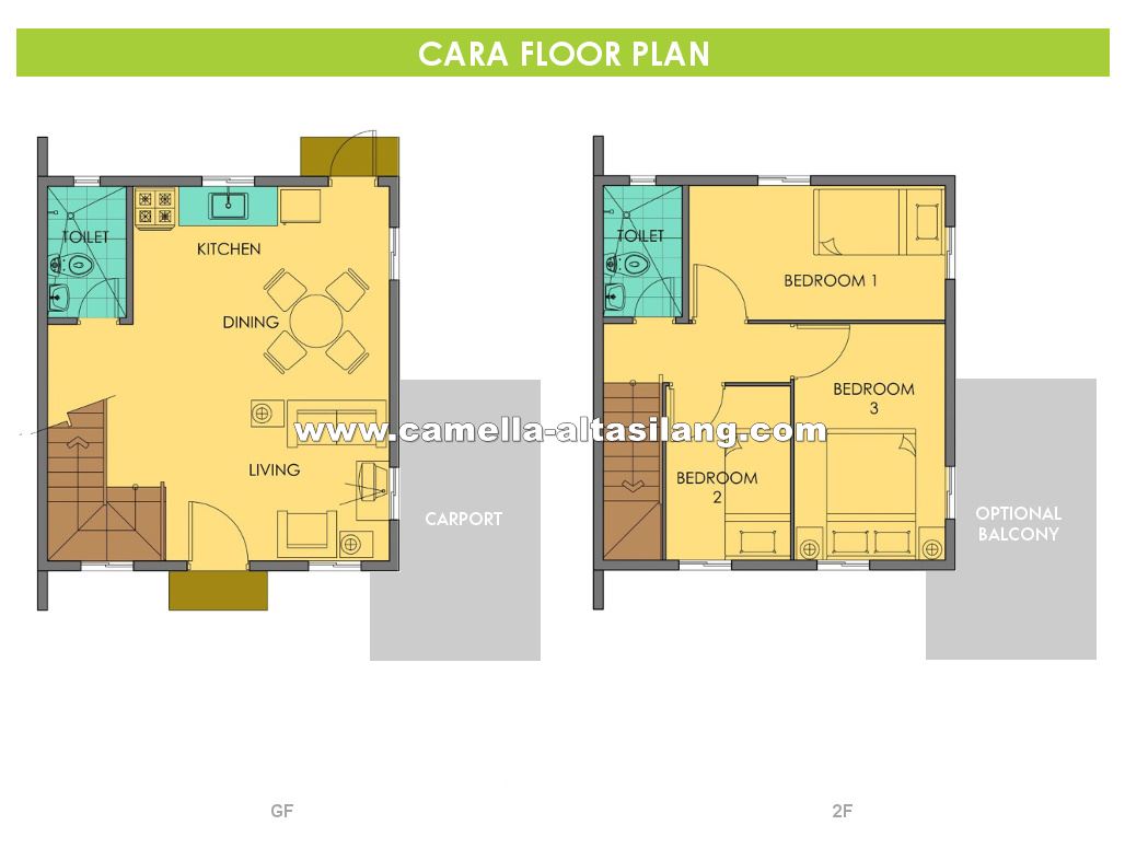 Cara has a minimum lot area of 100 sqm and a house area of 66 sqm. Cara is your practical, yet modern 2-storey house. It’s a single attached house with three bedrooms, two toilets and baths, a living area, dining area, kitchen, a carport, provision for a balcony, and a laundry and service area. At an affordable price, you can own this fully functional house and lot in Camella Alta Silang in Cavite!