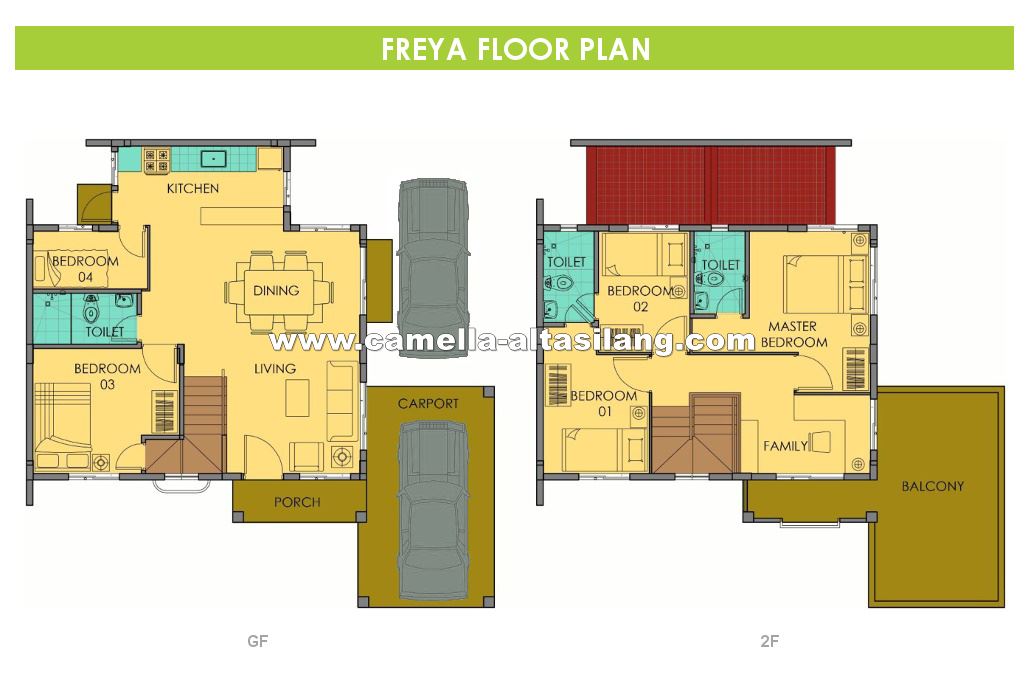 Freya has a minimum standard lot area of 173 sqm and a house area of 142 sqm. Freya is one of the newest house models in our top-of-the-line Grande series. It’s a single attached house with five bedrooms, three toilets and baths, a study area, a living area, dining area, kitchen, 2 carports, balcony, covered porch and a laundry and service area. At a very attractive price point, you can own this exquisitely beautiful five-bedroom house and lot in Camella Alta Silang in Cavite!